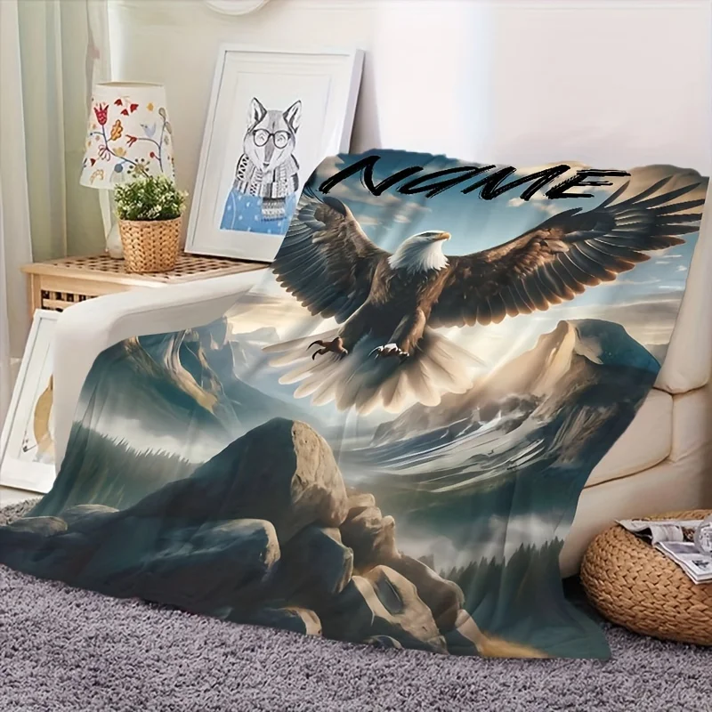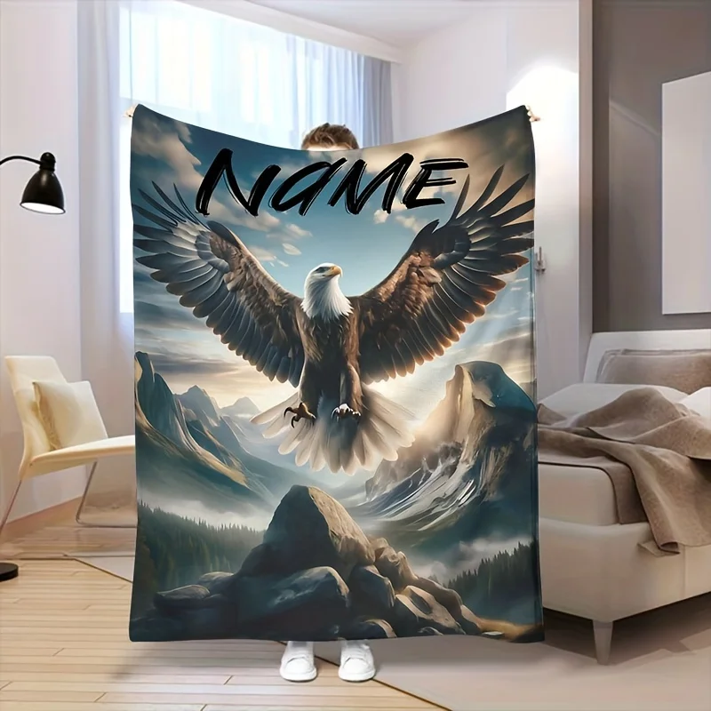 Customized Name Eagle Pattern Blanket – Personalized Gift for Everyone, Perfect for Bedroom, Living Room & Sofa Decoration